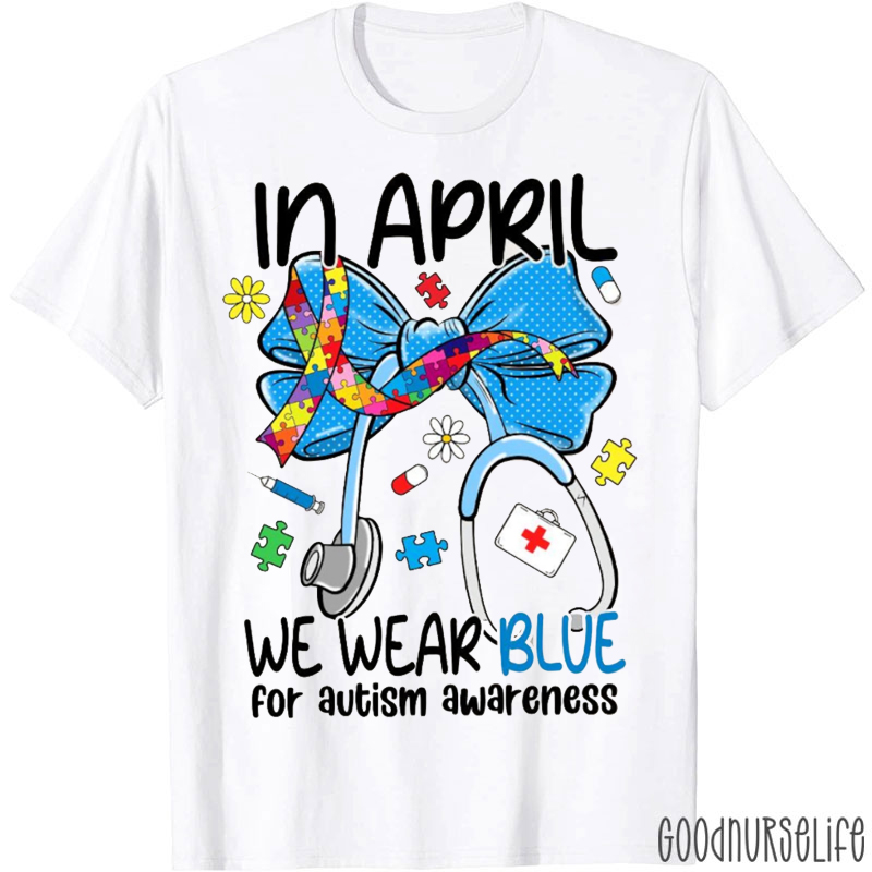 In April We Wear Blue For Autism Awareness Blue Bow Tie T-shirt