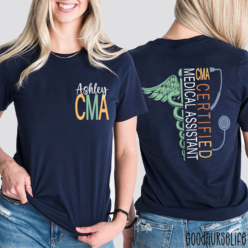 Personalized CMA Certified Medical Assistant Nurse Two Sided T-Shirt