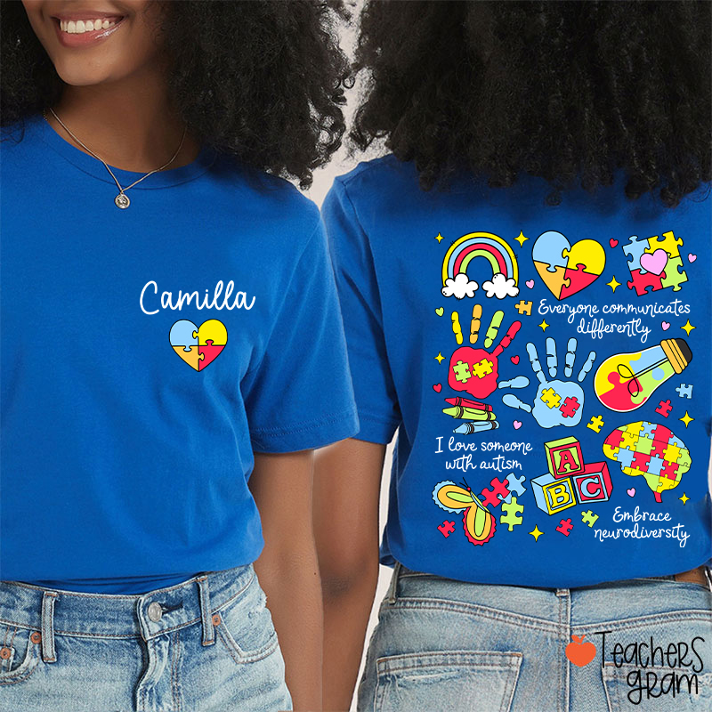 Personalized Name Everyone Communicates Differently Two Sided T-Shirt