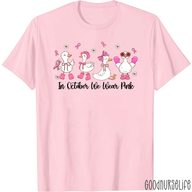 Breast Cancer Awareness Ducks In October We Wear Pink Nurse T-Shirt