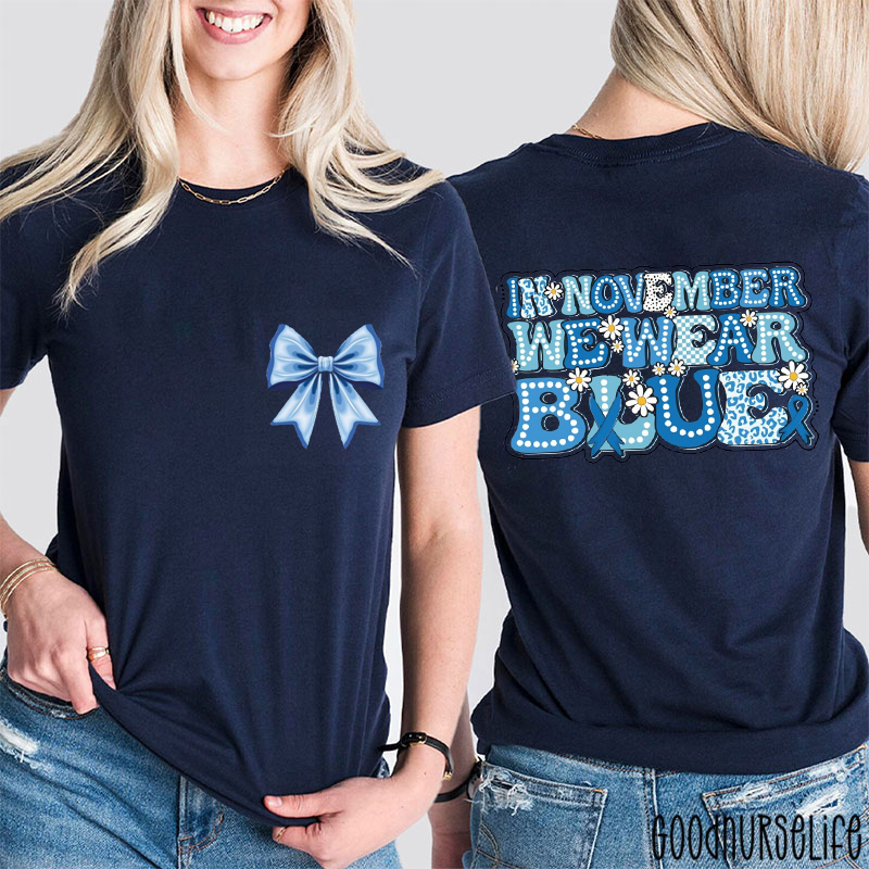 Blue Ribbon Support Diabetes Awareness Nurse Two Sided T-Shirt
