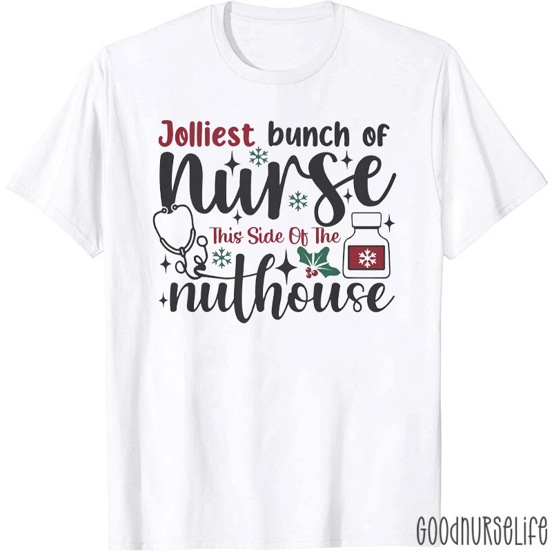 Nursing Holiday Christmas Jolliest Bunch Of Nurse This Side Of The Nuthouse Nurse T-Shirt