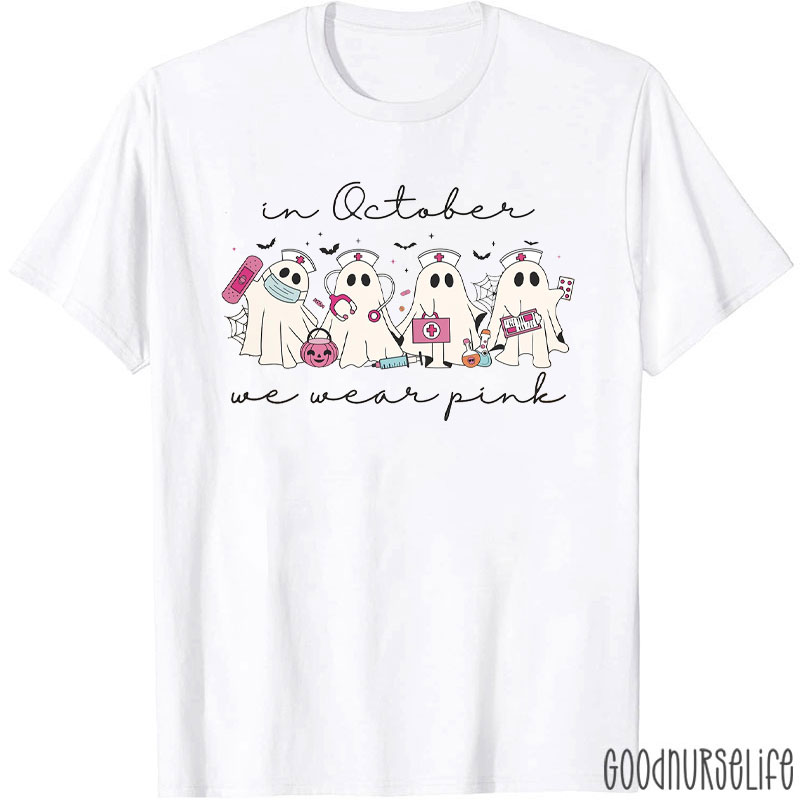In October We Wear Pink Nurse Ghosts Breast Cancer Awareness Nurse T-Shirt