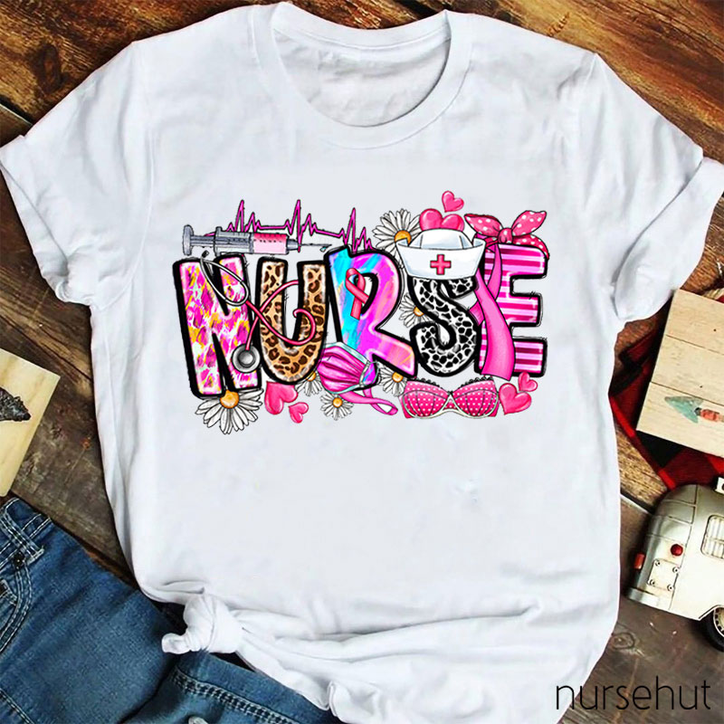 Breast Cancer Pink Stethoscope Nurse T-shirt