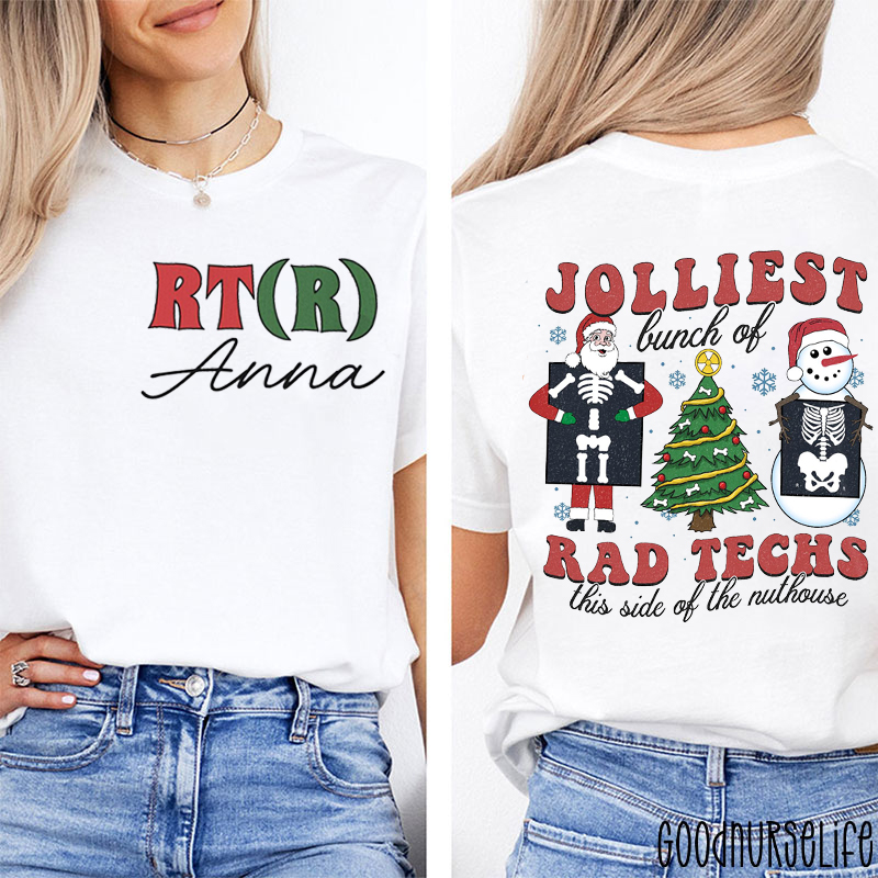 Personalized Name Jolliest Bunch Of Rad Techs This Side Of The Nuthouse Radiology Two Sided T-Shirt