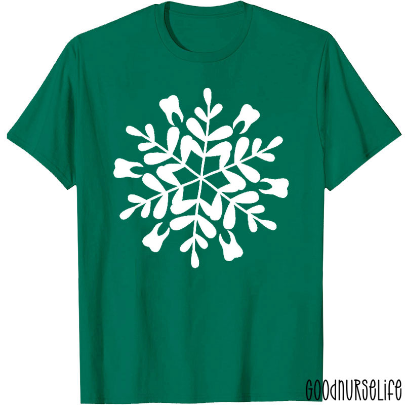 Dental Christmas Whimsy Tooth Shaped Snowflake T-Shirt