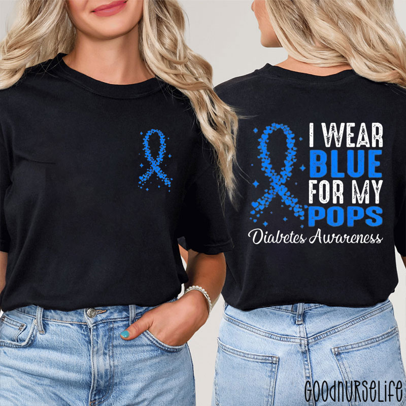 Personalized I Wear Blue For My Heart Ribbon Awareness Tribute Nurse Two Sided T-Shirt