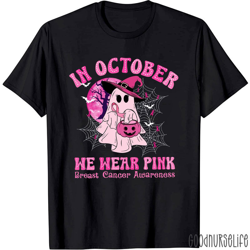 October Pink Ghost For Breast Cancer Awareness Nurse T-Shirt