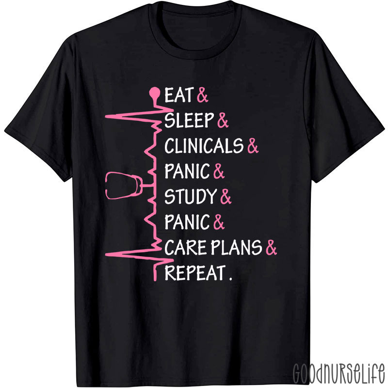 Eat Sleep Clinicals Panic Study Repeat Nurse T-Shirt