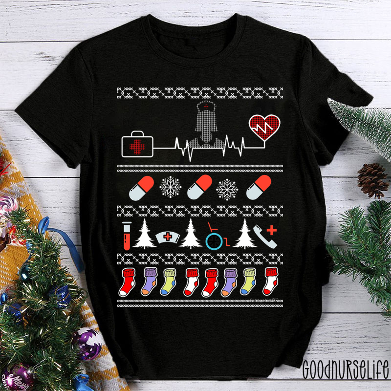 The Heart Beats Before Christmas Are Happy Nurse T-Shirt