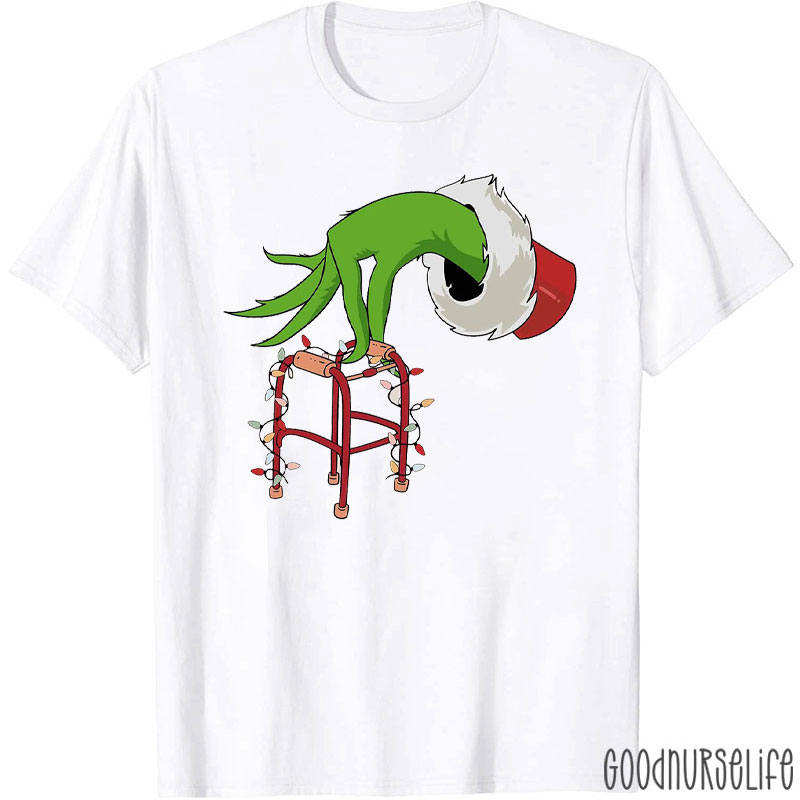 Christmas Geriatric With Walker Lights Nurse T-Shirt