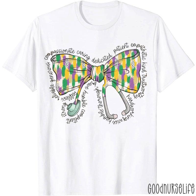 Mardi Gras Coquette Bow Tie Nurse T-shirt