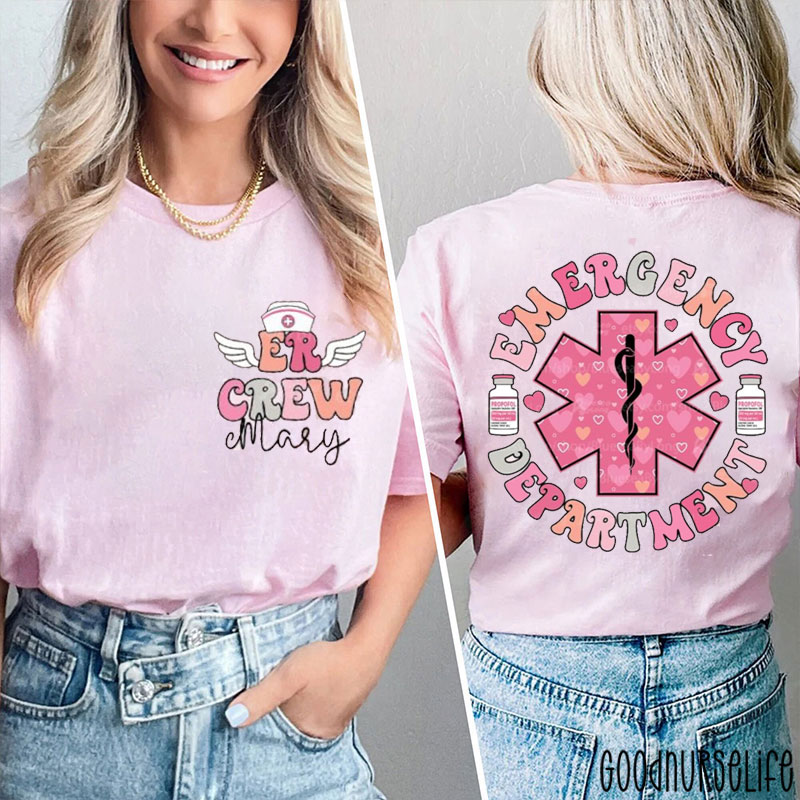 Personalized ER Valentine Cupid Funny Nurse Two Sided T-Shirt