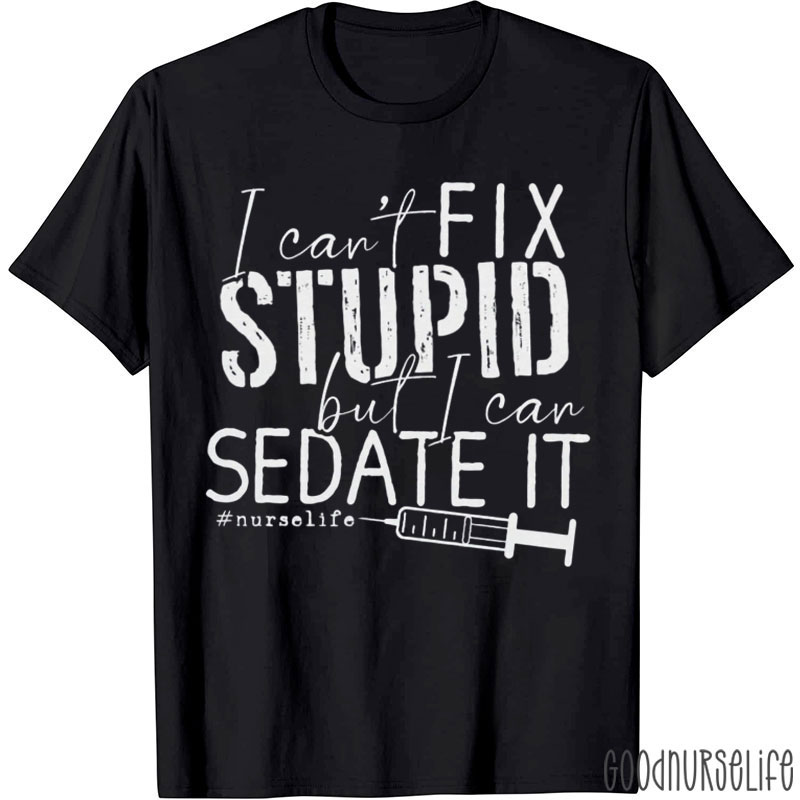 I Can't Fix Stupid But I Can Sedate It Nurse Life Nurse T-Shirt