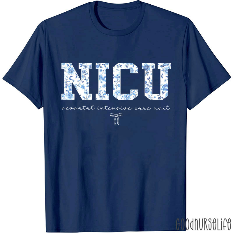 Personalized Blue Floral Neonatal Intensive Care Unit Nurse T-Shirt