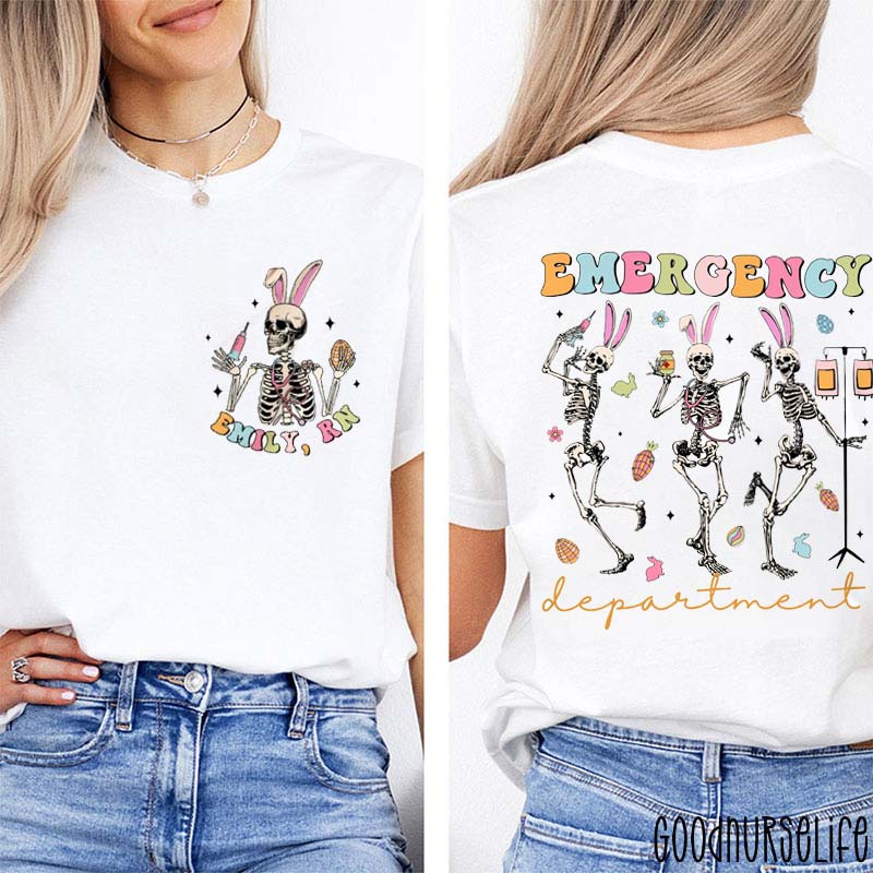 Personalized Easter Bunny Emergency Department Nurse Two Sided T-Shirt