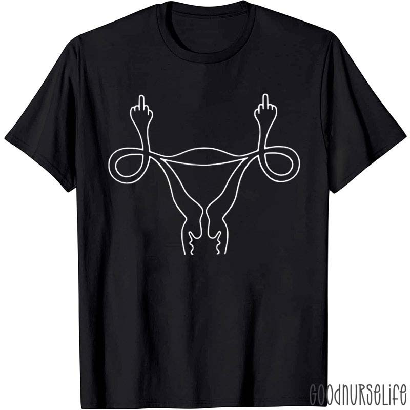 Double Middle Finger Uterus Nurse T-Shirt