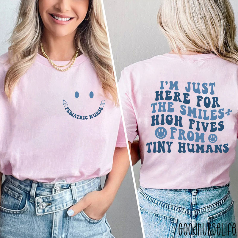 I'm Just Here For The Smiles From Tiny Humans Nurse Two Sided T-Shirt