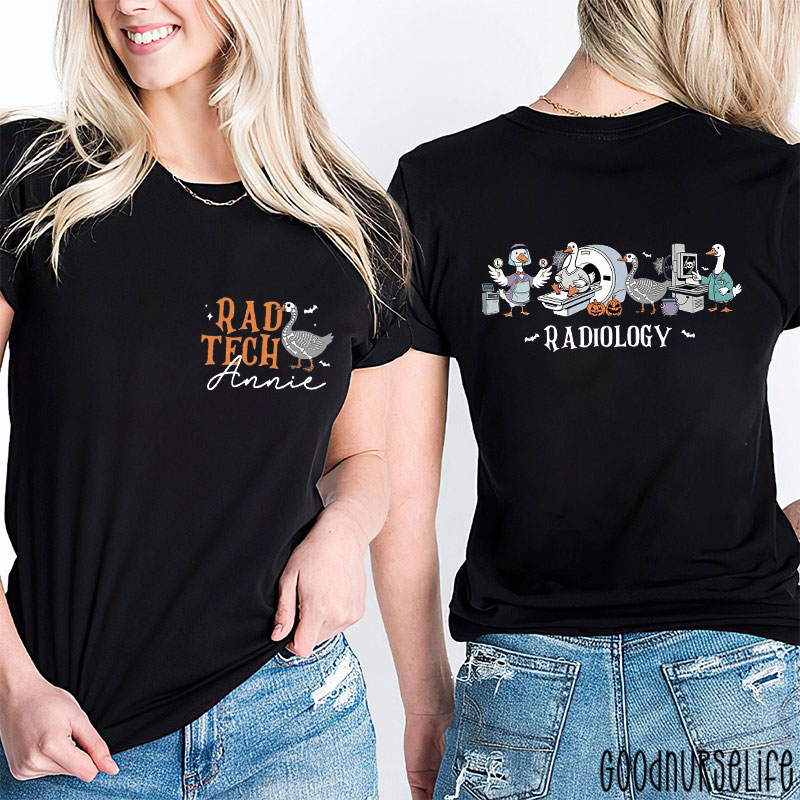 Personalized Halloween Duck Radiology Team Two Sided T-Shirt