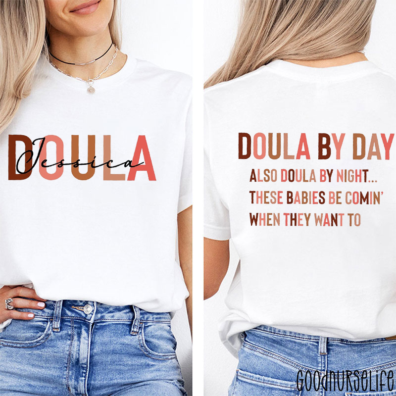 Personalized Name Doula By Day Nurse Two Sided T-Shirt