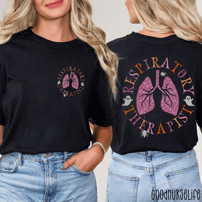 Halloween Spider Lungs And Ghost Spider Respiratory Therapist Two Sided T-Shirt