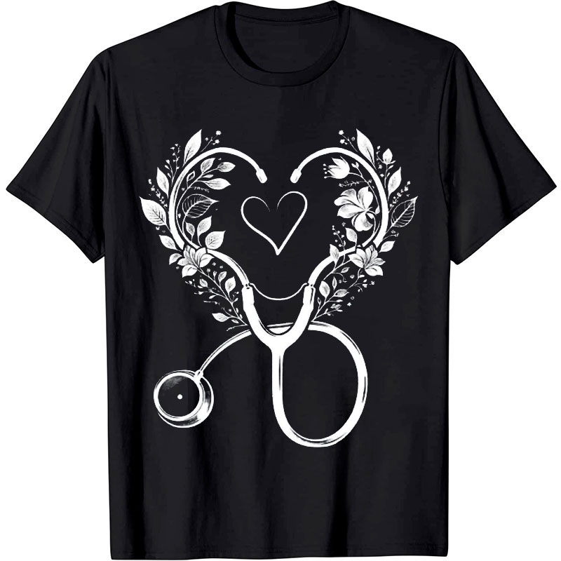 Floral Heart Stethoscope Nurse T-shirt