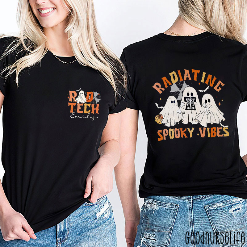 Personalized Radiating Spooky Vibes Halloween Ghosts With X-Ray Two Sided T-Shirt