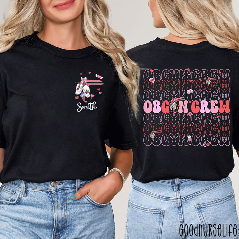 Personalized Name OBGYN Crew Valentine Nurse Two Sided T-Shirt