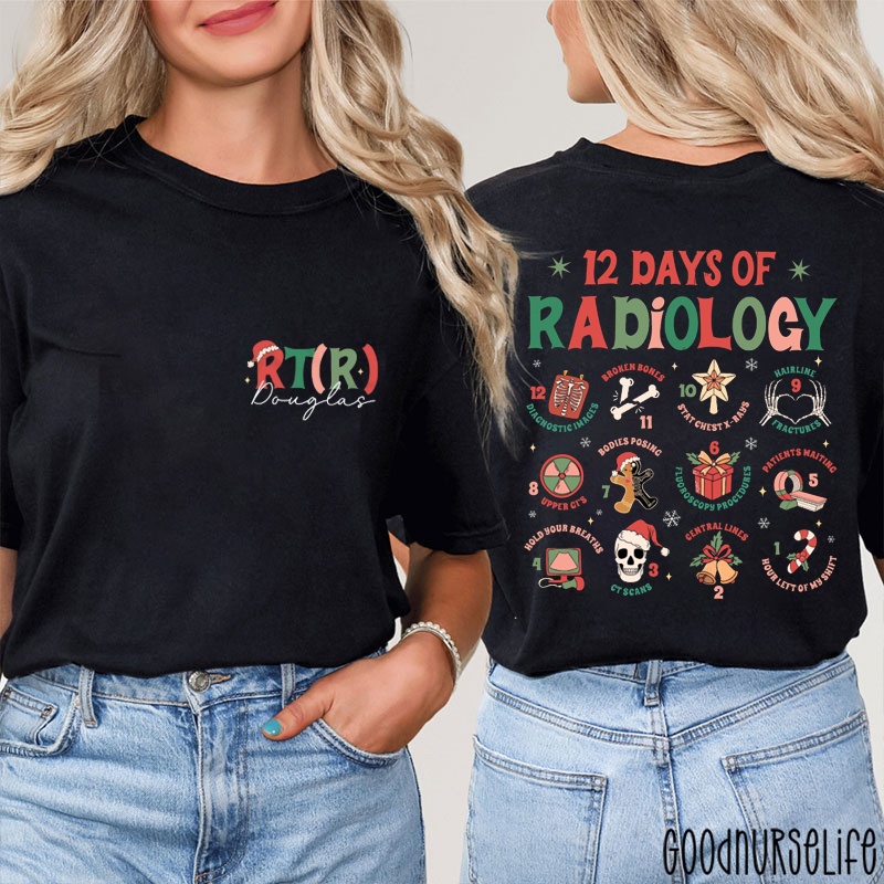 Personalized Holiday 12 Days Of Radiology RT Two Sided T-Shirt
