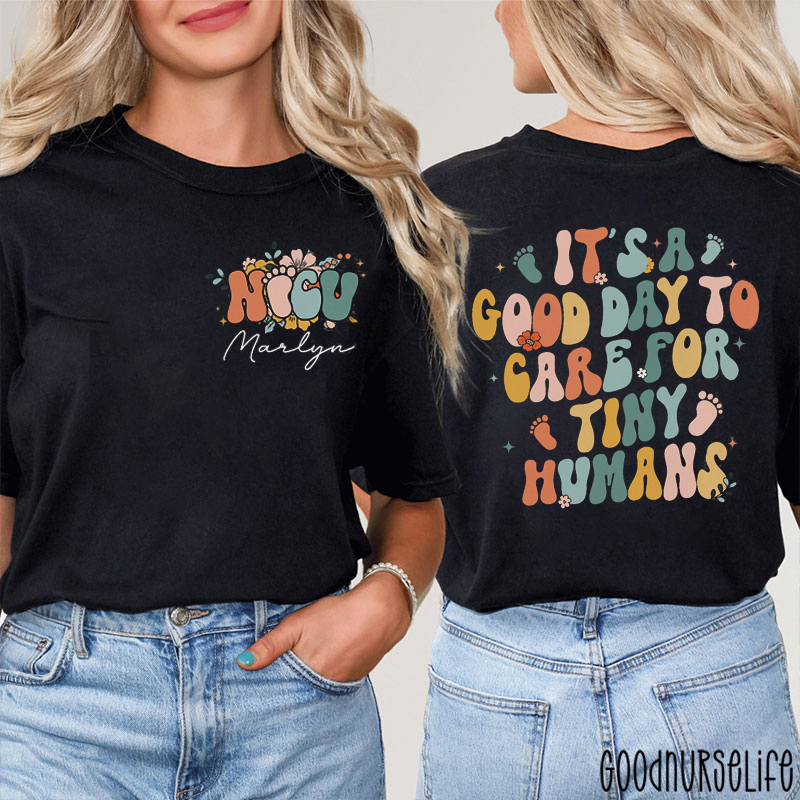 Personalized Name It's A Good Day To Care For Tiny Humans Nurse Two Sided T-Shirt