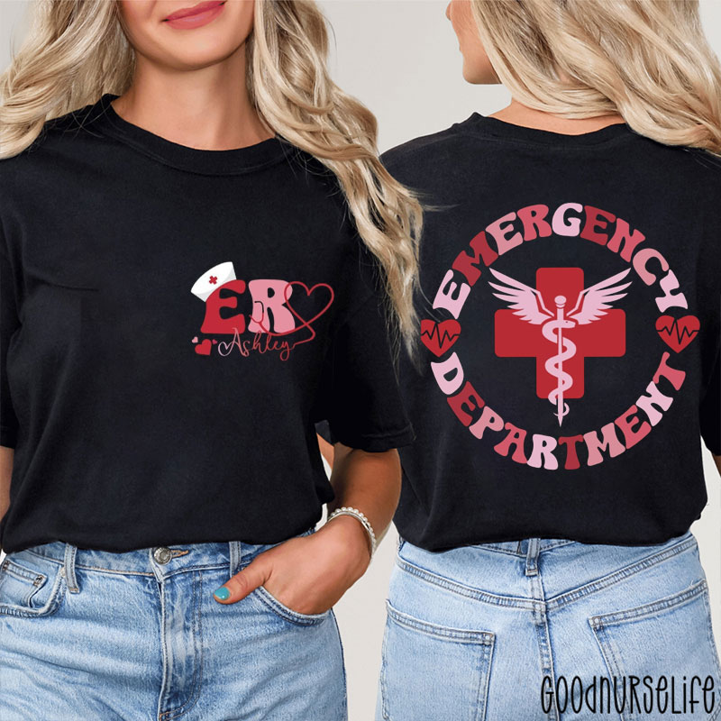 Personalized Valentine Days Emergency Department Nurse Two Sided T-Shirt