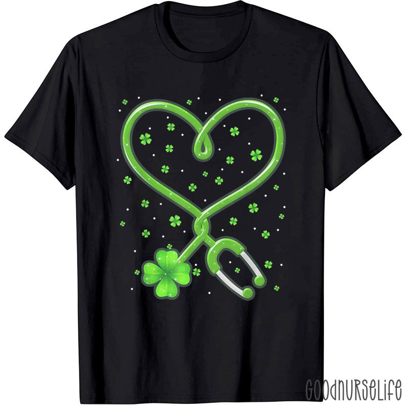 Sweet Heart Four Leaf Clover Stethoscope Nurse T-Shirt