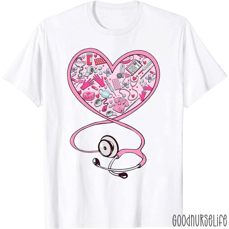 Valentine Heart Shaped Stethoscope Nurse T-Shirt