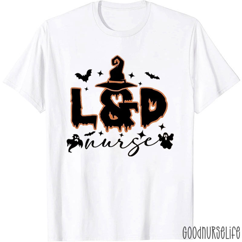Halloween Ghost Bat L&D Nurse T-Shirt