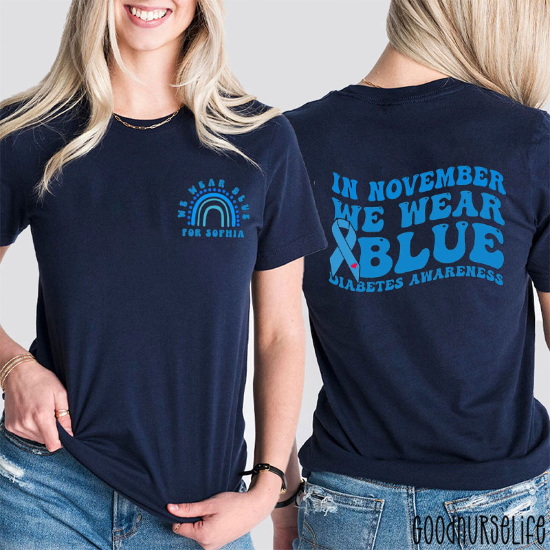 Personalized Diabetes Advocacy In November We Wear Blue Diabetes Awareness Nurse Two Sided T-Shirt