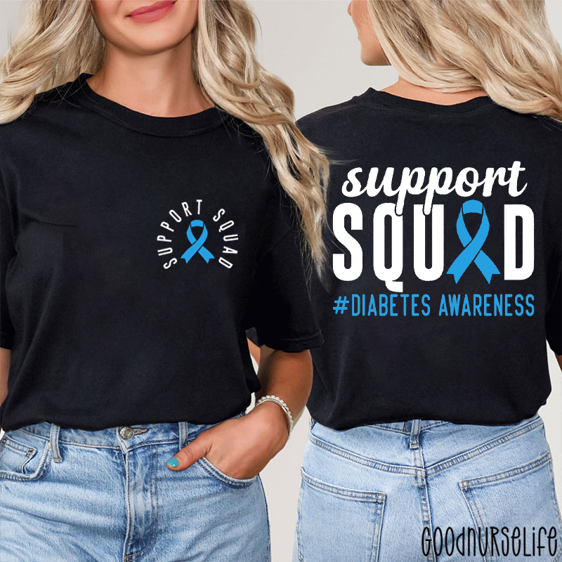 Support Squad Diabetes Awareness Nurse Two Sided T-Shirt