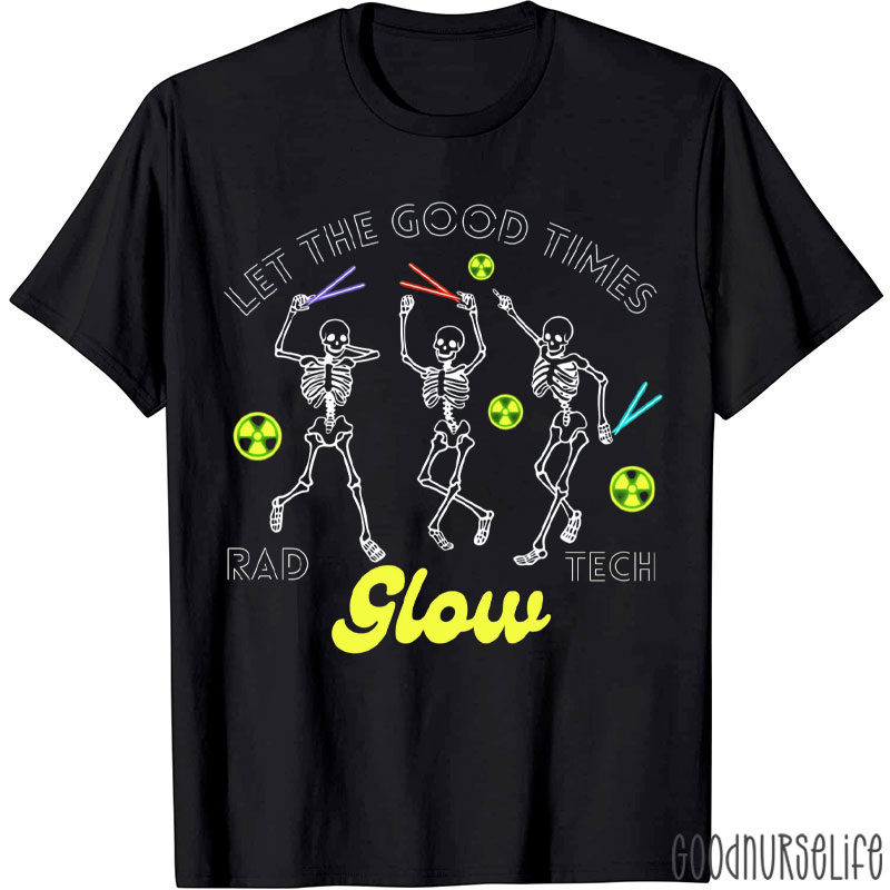 Let The Good Times Rad Glow Tech Dancing Skeletons Halloween T-Shirt