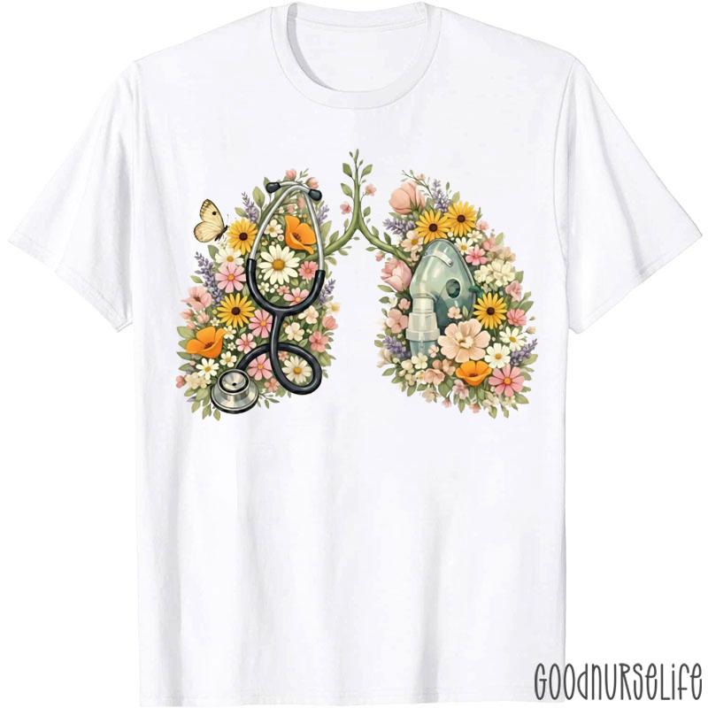 Floral Lung Art Respiratory Therapist T-shirt