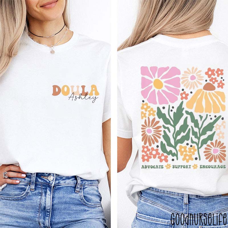 Personalized Doula Advocate Support Encourage Nurse Two Sided T-Shirt