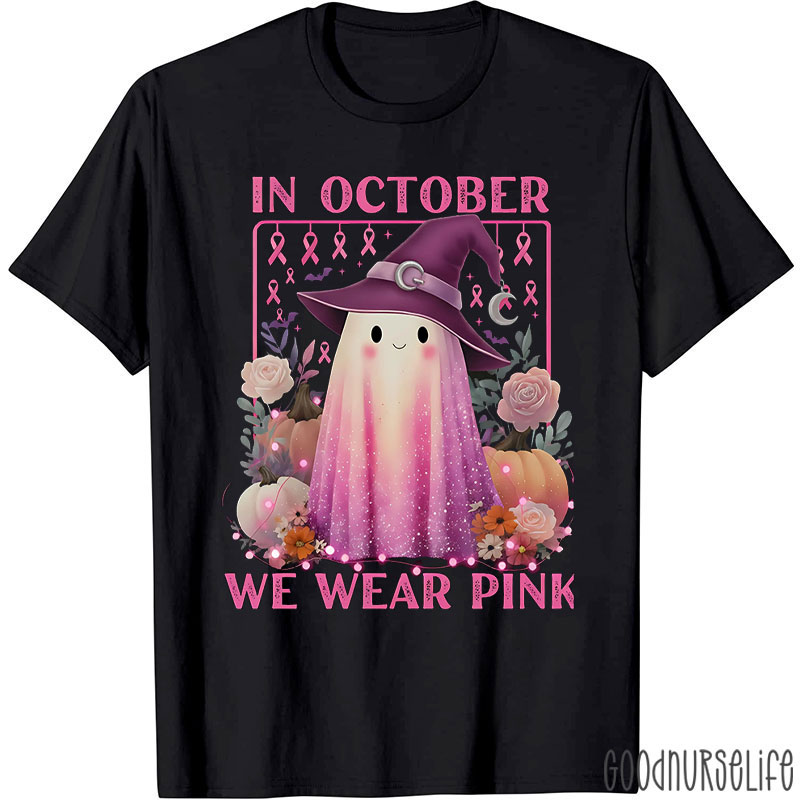In October We Wear Pink Cute Little Ghost Nurse T-Shirt