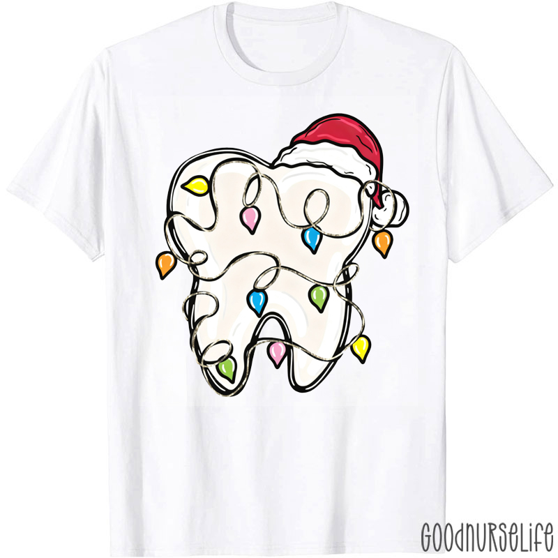 Tooth With Santa Hat And Christmas Fairy Lights T-Shirt