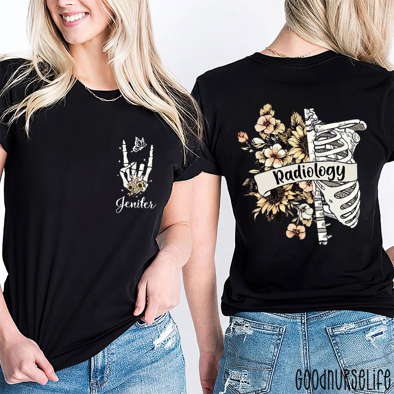 Personalized Floral And Skeletal Radiology Two Sided T-Shirt
