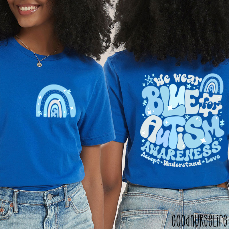We Wear Blue For Autism Awareness Nurse Two Sided T-Shirt