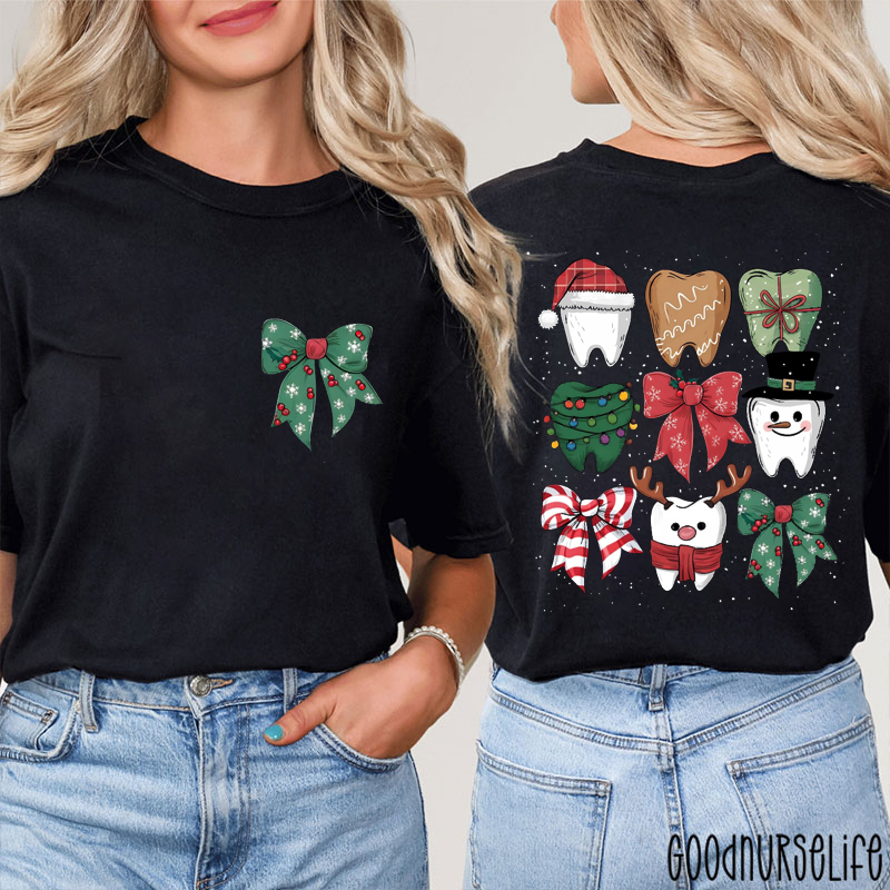 Personalized Funny Christmas Dental Coquette Bow Two Sided T-Shirt