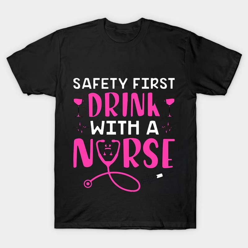 Safety First Drink With A Nurse T-Shirt