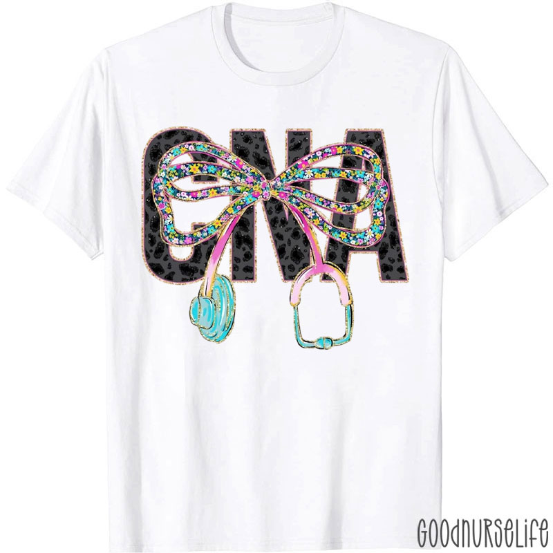 Personalized Floral Stethoscope Bow Nurse T-Shirt