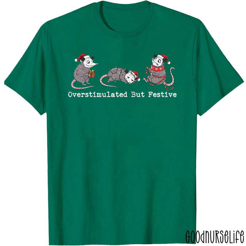 Overstimulated But Festive Opossum Nurse T-Shirt