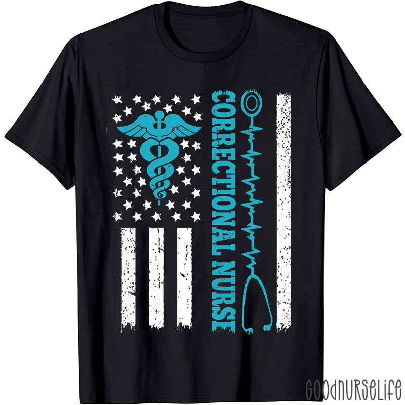 Patriotic Correctional Nurse Flag Corrections Healthcare Nurse T-Shirt