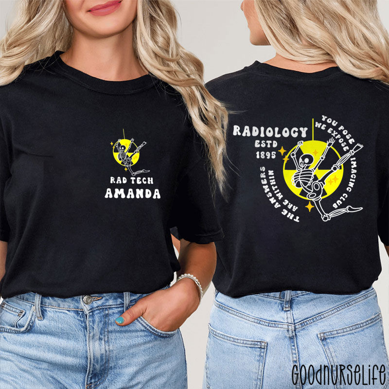Personalized Name Rad Tech You Pose We Expose Radiology Two Sided T-Shirt