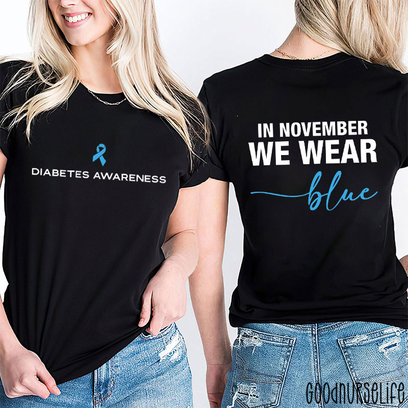 Diabetes Awareness In November We Wear Blue Nurse Two Sided T-Shirt